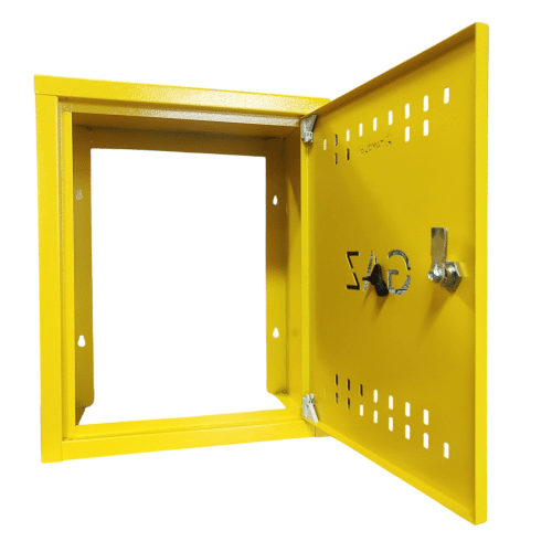 Szafka gazowa 40x50x25 cm metalowa do montażu natynkowego na ścianie budynku. Obudowa nie posiada tylnej ścianki.